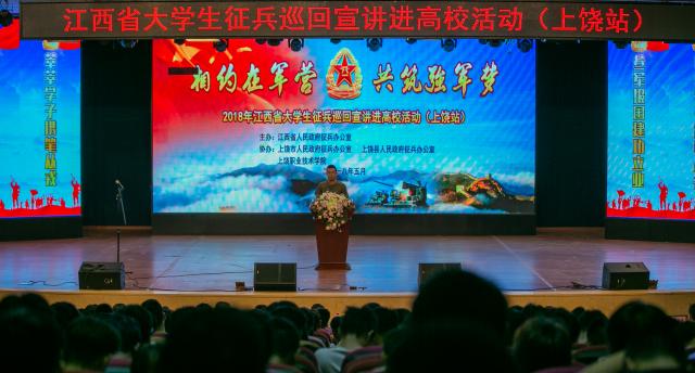 为积极推动我市大学生征兵工作,深入开展高校参军报国宣传动员,日前,由江西省征兵办主办,上饶市、上饶县征兵办协办,6名大学籍退役军人组成的“征兵宣讲进高校”巡回宣讲团,来到我院进行2018年征兵动员宣讲。江西省军区动员局、上饶军分区动员处、县人武部及学院相关领导出席宣讲大会。