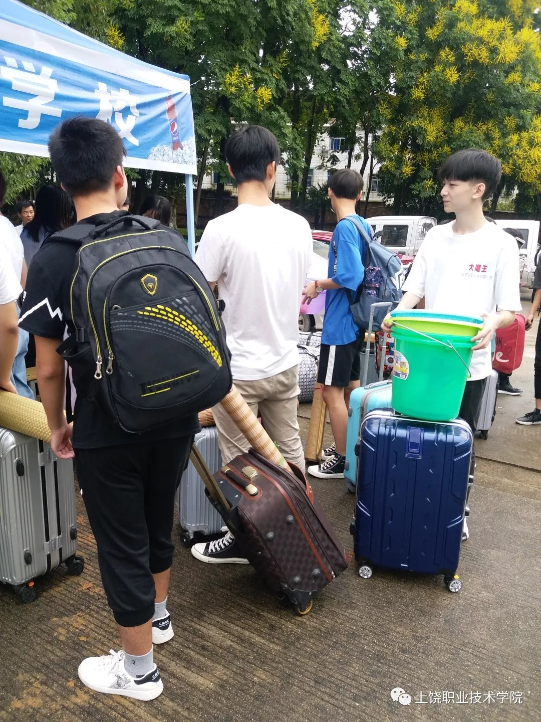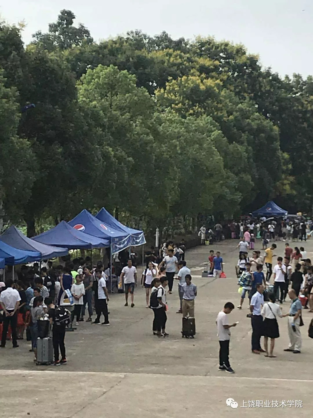 青一色的迎新帐篷从校园入口延伸到