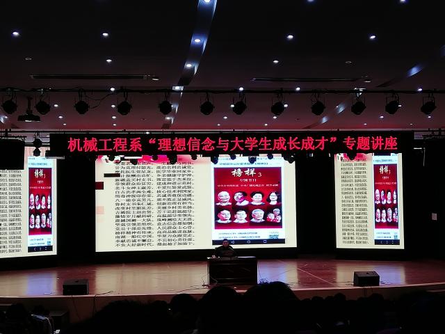 为引导大学生树立崇高的理想信念,坚定“四个自信”,弘扬社会主义核心价值观,促进大学生成长成才,成为中国特色社会主义事业全面发展的合格建设者和可靠接班人。11月20日下午,我院机械系党支部书记胡洪波在学术报告厅做了题为“理想信念与大学生成长成才”的专题讲座。机械系约500名学生聆听了本次讲座。