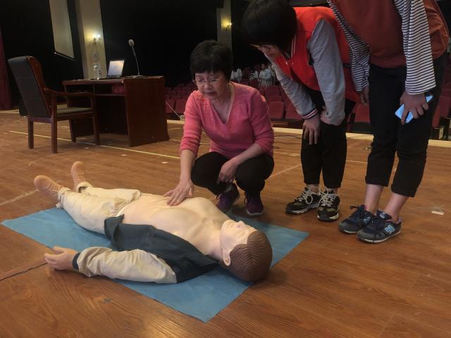 苏医生从急救案例引入,阐述掌握心肺复苏术在抢救人生命中的重要性,并重点围绕心搏骤停的判断方法和如何实施心肺复苏作了详细的讲解,同时针对异物窒息、扭伤、烫伤等有可能出现的意外情况给出了专业性处理意见。讲座内容详实,现场气氛活跃。理论部分结束后,部分学生走上讲台在苏医生的指导下进行心肺复苏术的操作演练。