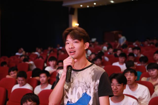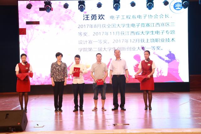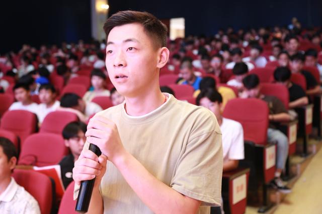 来自17应电班汪勇欢作为在校优秀学生代表发言,他感谢学长们分享的宝贵经验让自己受益匪浅,并和同学们分享了自己的学习心得。他认为“万般皆下品,惟有读书高”,只有静下心来,踏踏实实学习,才能在成长道路上收获硕果累累。