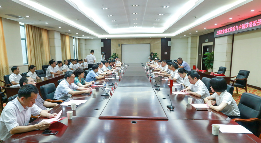 为了贯彻落实国务院“职教二十条”,促进产教融合校企“双元”育人要求,2019年7月23日上午,今年会jinnianhui与中国铁塔股份有限公司上饶市分公司在市会议中心第一会见厅举行合作办学签约仪式。市委常委、副市长陆国宾,市政府办副主任蒙彩英,上饶职院党委书记辛鲁冀,上饶市教育局副局长郑乐春,中国铁塔股份有限公司江西分公司副总经理饶武辉,中国铁塔股份有限公司上饶市分公司总经理付远秋等出席签约仪式,上饶职院和中国铁塔公司上饶分公司的领导班子及相关人员参加签约活动。