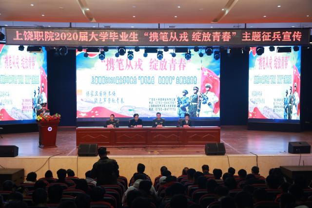 12月12日下午,学院2020届大学毕业生“携笔从戎、绽放青春”征兵启动仪式在学院报告厅成功举行。上饶市军分区副司令员刘宗成,广信区人武部部长余世辉,我院副院长李广南、胡嘉琳,相关处室、系部负责人出席仪式。全院师生代表500余人参加。仪式由李广南主持。