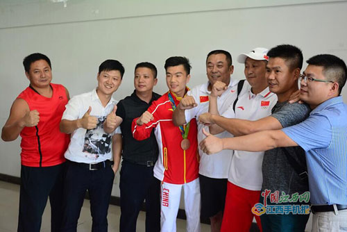 2016年8月29日获得里约奥运会男子拳击季军的胡建关回上饶职院和部分老师合影
