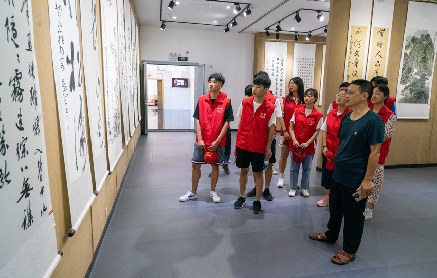 8月13日上午,上饶职院大学生文明实践小分队又来到广丰区吴俊发艺术馆进行艺术实践,接受书法和绘画高雅艺术的熏陶,同时,也做起了义务宣传员,倡导广大市民主动的走进艺术馆,提升自身综合素质和文化素养。