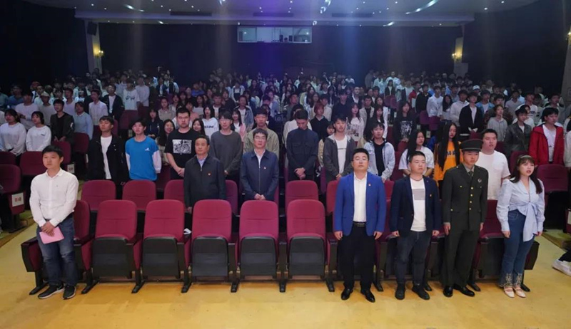 在升国旗、唱国歌环节,500余名团员青年代表列队集合,参加升国旗仪式。并特别邀请学院选派在脱贫攻坚一线的驻村“第一书记”许永青进行了以“决战小康、奋斗有我”为题的国旗下的演讲,通过分享扶贫故事,使大家深切的感受到扶贫路上的青春风采和奋斗精神。