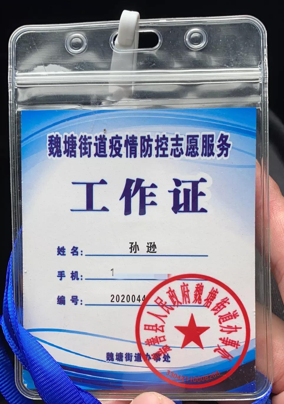 1月28日,浙江省嘉善县魏塘街道新型冠状病毒疫情防控工作指挥部向街道全体居民发出“关于征集疫情防控志愿者的函”,决定成立疫情防控志愿服务队。消息一出,大学生返乡在家的孙逊就积极响应,要求参加疫情防控。