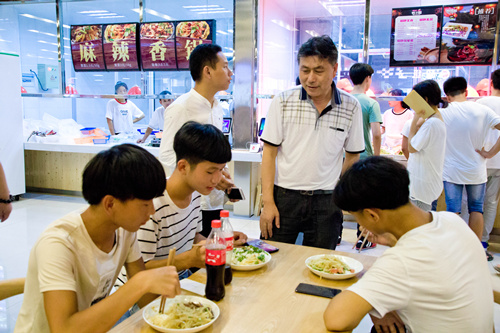 傍晚时分,正值学院食堂晚餐开饭时间,刘付生来到刚装修一新的学生第一食堂,在每个窗口前都驻足停留,耐心、详细询问饭菜的品种、价格等问题。刘付生还亲切地向就餐的学生问到:“吃一顿饭需要花多少钱?”“食堂的饭菜合不合胃口,份量足不足?”考虑到孩子们远离家人,又是长身体的重要阶段,刘付生如同家长般地关心孩子们的一日三餐,也操心着孩子们的日常起居,并叮嘱负责食堂的工作人员:要采取切实措施,把学生食堂办好,确保食品安全卫生,要让学生吃得起,吃得饱,吃得好,还要采取措施,在食堂经营商之间形成良性竞争机制。