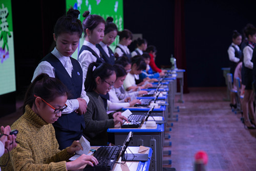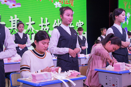 本次竞赛共分三个环节:一、个人单项赛(点钞技术、财会书写、填制支票、装订凭证、珠算和翻打凭证);二、团体赛(三人四项目协助完成);三、班级答题环节。参赛选手经过长时间的勤学苦练,共有400多人次的学生参加了预赛和复赛,最后有73名选手,14支团队进入了总决赛。经过近3个小时的比拚,最后周芳洁、徐雪梅、李素丹、王雯馨、郑铭君、吴玉甜分别夺得了六个项目的一等奖;15五年会计1班和16五年会计1班分别夺得了15级和16级团体赛的一等奖。