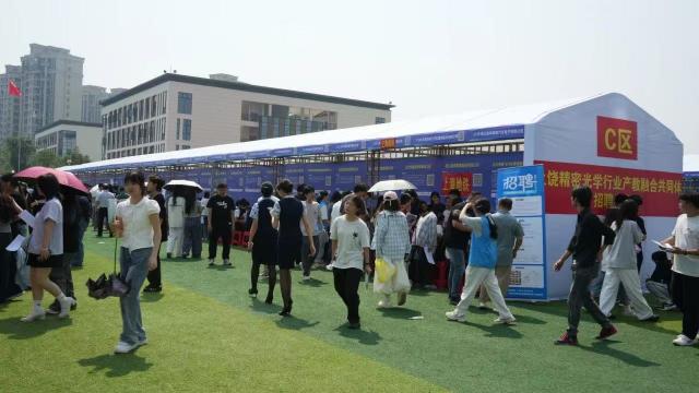 招聘会设置上饶市光伏市域产教联合体、上饶精密光学行业产教融合共同体、上饶市高铁经济试验区等专区。通过“产业专区 +精准对接”模式,实现学校专业设置与区域产业发展的精准匹配,有效提升人才培养与市场需求的契合度。此外,还设置了综合功能区和服务咨询区,组织就业指导教师团队在现场为学生提供简历制作、职业规划、求职指导等服务。