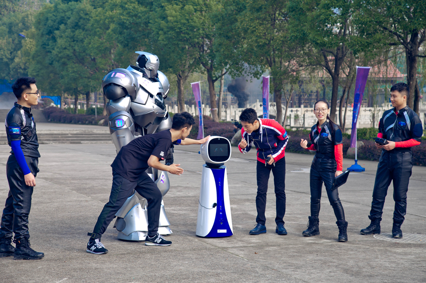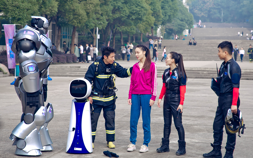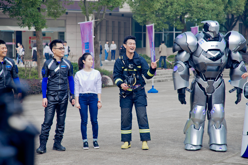除了小撒、小于外,拍摄现场还有一个重量极人物――高大的机器人也吸足了眼球,据说他是主持人“小极极”,整个节目的操控全由他,权力可不小。瞧,撒贝宁去营救现场前,还得听他的一番指挥。(宣传部)