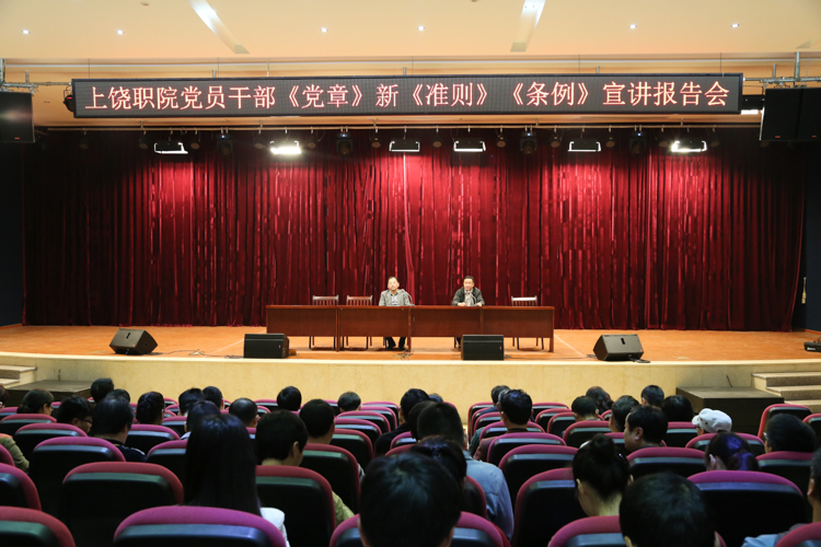 4月6日下午,我院在新报告厅举行了《党章》新《准则》《条例》宣讲报告会,院纪检书记王科福主持会议并讲话,党办主任张剑作宣讲报告,院中层领导干部及党员100余人参加了报告会。