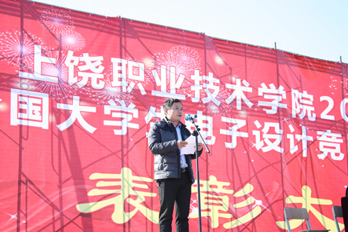 接着,获奖学生占梁梁和教师游雨云作为代表发表了获奖感言,占梁梁同学称此次竞赛不仅增长了见识、熟悉了集成电路,也使他了解到了更多先进的技术和高级开发平台。他认为该荣誉的获得增加了自信,为人生之路插上了飞翔的翅膀。游雨云老师汇报了此次大赛的备战过程和体会,他表示赛间虽然付出了许多艰辛和汗水,但是赛间院领导的关心和同事的支持,以及赛后的殊荣都让他倍感温暖,今后他将在教学中更加注重把技能大赛内容融入到常规教学中去。