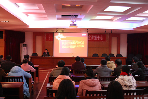 我市正式启动全面学习贯彻党的十八届五中全会精神集中宣讲。2015年12月22日下午,我院在行政大楼会议室举行了党的十八届五中全会会议精神宣讲报告会,中共上饶市委宣传部理论科吴晓俊副教授作宣讲报告,我院部份师生听取了报告。