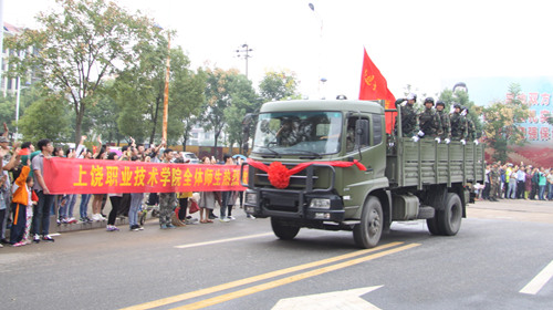 9月19日下午,驻饶某部队门口热闹非凡,中国人民抗日战争暨世界反法西斯战争胜利70周年大会阅兵的驻饶某部受阅官兵载誉凯旋,我院2000多师生,在飨赣曛校殖窒驶ㄓ氩势欤诖寺≈鼐傩辛艘怀』队鞘健