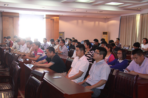2015年6月5日,在学院行政大楼七楼会议室,我院特邀江西科技师范大学硕导、副院长詹华群教授进行国家级、省级竞赛指导培训工作的精彩讲座。全院各项竞赛指导老师共80余人聆听了讲座。