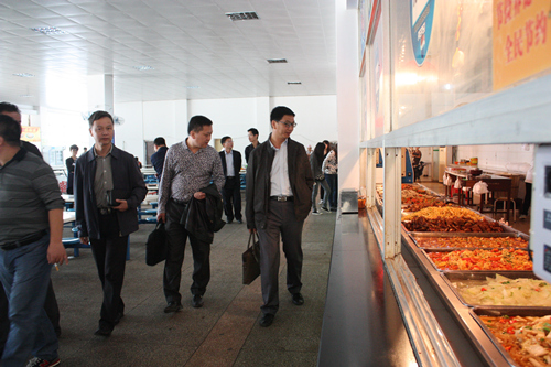 随后,督查组一行实地考察了两家学生食堂,并走进操作间,一一检查了洗消间、荤素切间、副食制作间和主食库,并向工作人员询问了食品安全、加工程序和饭菜质量等问题,餐厅负责人员客观详细地回答了所提问题。在食品存储间,督查组仔细查看了餐厅的采购记录、食品检测报告以及许可证等重要档案,我院后勤产业处负责人向督查组一行介绍了餐厅食品购进的安全渠道和程序。