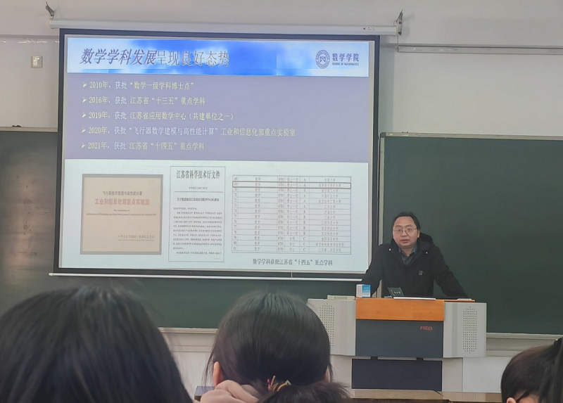 讲座伊始,周良强教授从ballbet贝博bb艾弗森引入,向同学们介绍了南京航空航天大学数学学院的历史沿革与ballbet贝博bb艾弗森,激发了学生们对于考研院校的向往与思考。他带领学生由浅入深,从学院基本概况到特色发展战略,使同学们更加全面具体的了解到学校的基本情况。