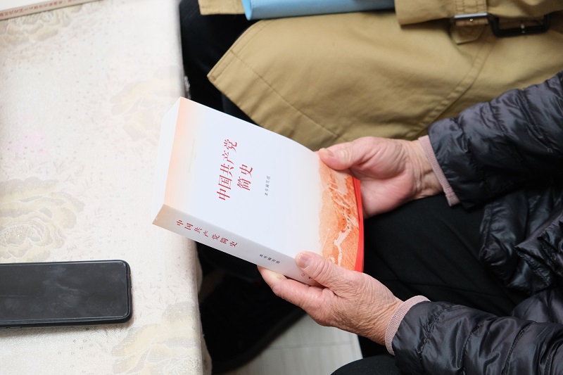图为师生党员为李爱云赠送红色书籍。记者 降怡 摄