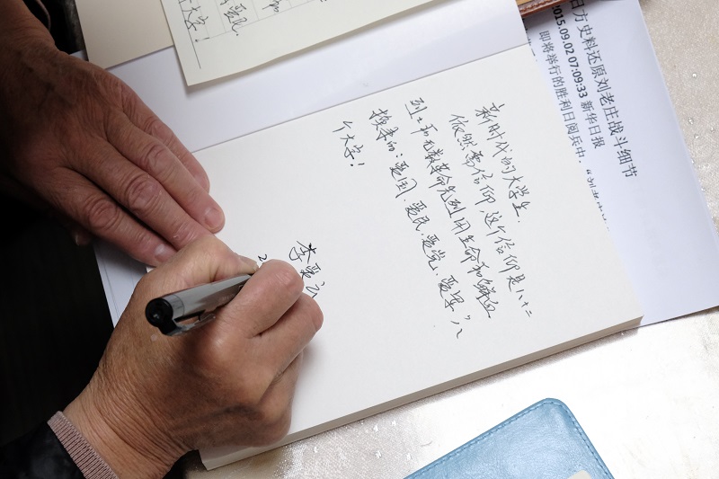 图为李爱云为大学生寄语留念。记者 降怡 摄