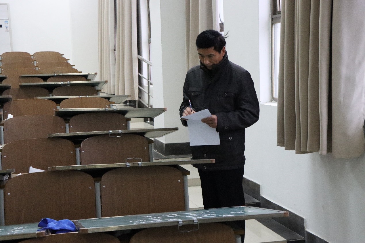 比赛开始后,参赛选手们全神贯注,认真地在黑板上写出一笔一划,铁画银钩,各有自己的风格。粉笔字写毕,各位同学退场,马强老师仔细观察同学们作品中的优劣之处,并为整体作品打分。而后的钢笔字比赛中,同学们反复体味每个字的韵味,完成了一幅幅优秀作品。比赛期间,马强老师和监考组学生认真巡考,现场井然有序。