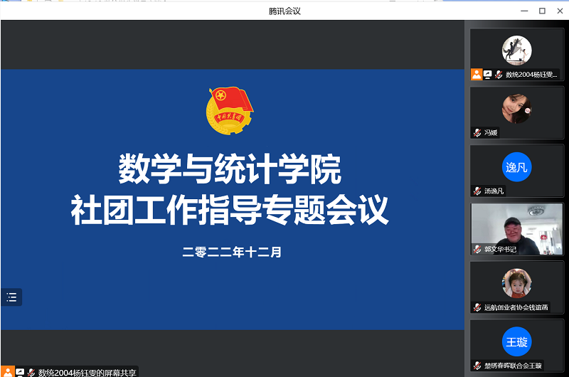 为确保贝博社团工作规范有序开展,充分发挥学生社团的重要作用,展现贝博社团文化风采,ballbet贝博bb艾弗森关工委于12月17日组织开展社团工作指导专题会。参加本次会议的有数统学院关工委常务副主任郭文华老师、各学生社团指导老师以及负责人。