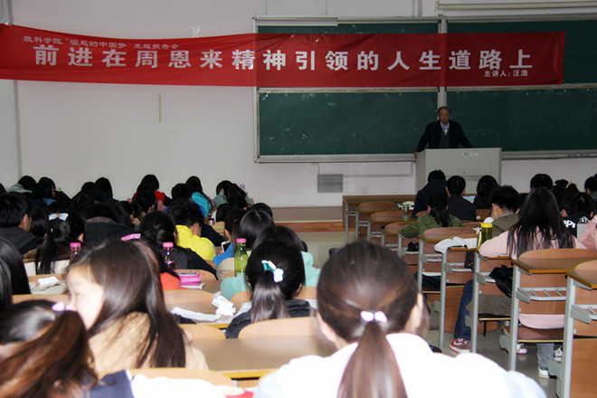 周恩来的一生历经风雨,汪老师用近两个小时为同学们解读了一个真实的周恩来,并对同学们寄予了深厚的希望。本次讲座由数科学院关工委和团委联合举办,此次讲座加深了数科学院青年学生对周恩来精神内涵的深入理解,使得学生们进一步明确了自己所承担的责任和义务,并树立了自己的梦想和目标,为数科学子努力践行周恩来精神指明了方向。