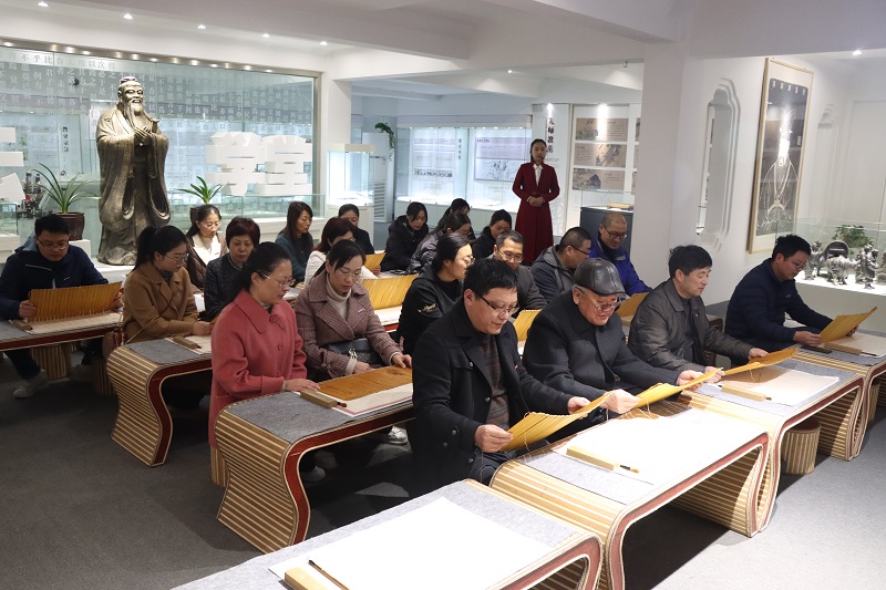 在讲解员带领下,师生党员参观学习了中国教师博物馆“教师之祖”“教师之史”“教师之道”“教师之所”“名师堂”“群像馆”等展区。步入展厅,仿自孔庙的“斯文在兹”匾额映入眼帘,大家漫步博物馆中,参观了博物馆展出的教师各个时期的近千件文物史料、文化珍藏、实物档案以及古今著名教育学家的物品、作品等,对“教师”一词的由来及内涵有了重新的认识。在“教师鼻祖”展厅,师生党员认真品读孔子的传奇故事,从《论语》典故中领悟博大精深的教化之道。在“杏坛学堂”,大家手捧竹简,由学堂老师领学《论语》,对话儒家经典。在“教师风物”展厅,院党委书记柏传志、院关工委常务副主任郭文华等通过直观展示的戒尺、摇铃、教铃等教具向学生党员阐释了教具与学校的演变与发展。在“教师典范”展厅,大家通过观阅鲁迅先生的任教聘书、陶行知先生的信札印章、“时代楷模”黄大年教授的工作手稿、藤野先生的手稿等对教育的初心有了更加深刻的感悟,同时,大家参观了最早及各时期的历史、数学、教育等各学科的教材,以及我国唯一保存至今的第一代计算机103机等。在六艺体验区,师生们体验了木雕版拓印技艺,亲手制作“先师孔子行教像”,师范生尹艺说:“当书上的儒家文化来到身边,比想象的更有趣、更直观、更有内涵,我将在以后的师范专业学习和一线从教中汲取精神养分,不断涵育师德,讲好中华传统文化故事。”教师党员张新建感叹道:“看到童年时的课本、下课时的摇铃,又让我回想起小学老师拿着教鞭给我们上课的场景,感慨万千。现场感受了黄大年、鲁迅、叶圣陶、约翰·杜威等国内外教育名家教书育人的故事以及他们对教育的信仰和追索,备受感动与鼓舞。这次党日活动对于我而言是一次难忘的体悟,是一次精神的洗礼,更是一次初心的追溯,回到教书育人的岗位中,我将以楷模为榜样和标杆坚守初心,爱生育生,争做一名受学生欢迎的大学老师。”