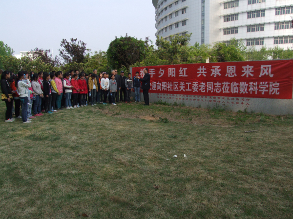 喜看朝阳正蓬勃,再望夕阳霞似火。数学科学学院邀请淮安市向阳社区关工委老同志们为大家讲述他们眼中的恩来。老同志们声情并茂地为大家讲述了一个个妙趣横生但又寓意深刻的小故事,告诫我们要学习周总理“坚守政治品德,谨守思想道德,恪守为政官德,遵守社会公德,信守家庭美德”的“五德”品质,争做一个有理想、有道德、有素质的“三有”青年,在社会实践中不断完善自己,像“山茶花”一样绽放于春的田野里。值世界读书日之际,老同志们以自身为榜样,与大家一起认真读书,深入学习,并不断督促大家要努力提高自身科学文化修养和思想道德素质,丰富自己的精神世界,增强自己的精神力量。