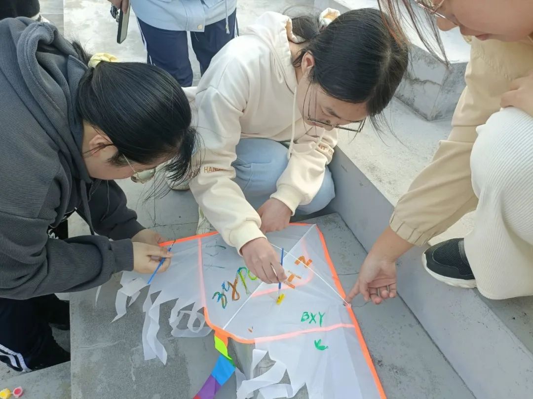 首先开展的是画风筝活动。活动过程中,同学们放飞一起绘画的风筝,七彩的风筝在天空中拼成一幅名为“青春”的画作。同学们你追我赶,各个都乐在其中,欢声笑语回荡在操场间。在徐徐清风中,同学们放飞的不只是风筝,更是一个又一个远大的理想。这个活动不仅培养了青年的创造力与想象力,更注重对青年人动手能力与团队合作的培养,这让同学们在放松的环境中畅想未来,规划前路,描绘梦想。