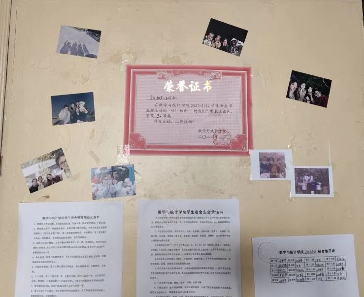 翔宇网42日电(记者 倪宗颖)为进一步推进学院文明寝室建设,帮助同学们养成良好的生活习惯,加强安全隐患意识,营造积极向上、富有活力、和谐良好的宿舍生活氛围,数统学院2101班于42日下午开展“春暖花开好时节,宿舍卫生来评比”内务整理评比活动。此次活动由班长、团支书和两位劳动委员对班级所有寝室内的卫生、物品摆放、违规电器等方面进行三方面检查并且拍照留存、打分,并对干净整洁的宿舍以及布置富有巧思的“特色布置”和“特色书桌”进行展示。