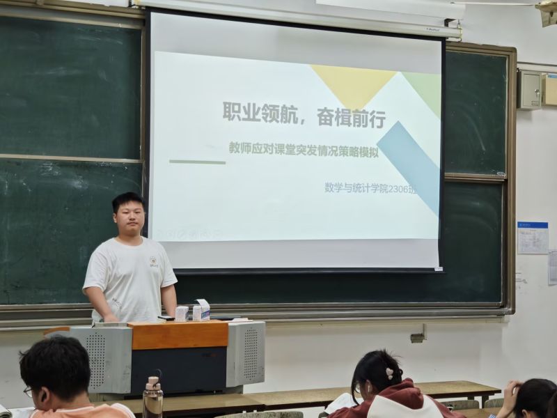 为加强学生对于职业的适应能力,提升职场应对能力,4月7日,数统2306班开展“职业领航,奋楫前行”主题班会。此次班会聚焦大学生在未来教师生涯中可能出现的突发状况进行模拟,通过课堂模拟的活动形式,旨在为参与者搭建一座连接校园与职场、梦想与现实的过渡桥梁。