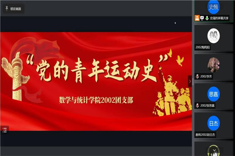 翔宇网4月16日电 记者(刘晓 睢堰)为更好地引导团员青年树立坚定的理想,帮助学生形成积极向上的生活态度和奋斗精神,ballbet贝博bb艾弗森2002班于4月15日线上开展了“党的青年运动史”线上主题团日活动,本次活动由团支书史蘋主持。
