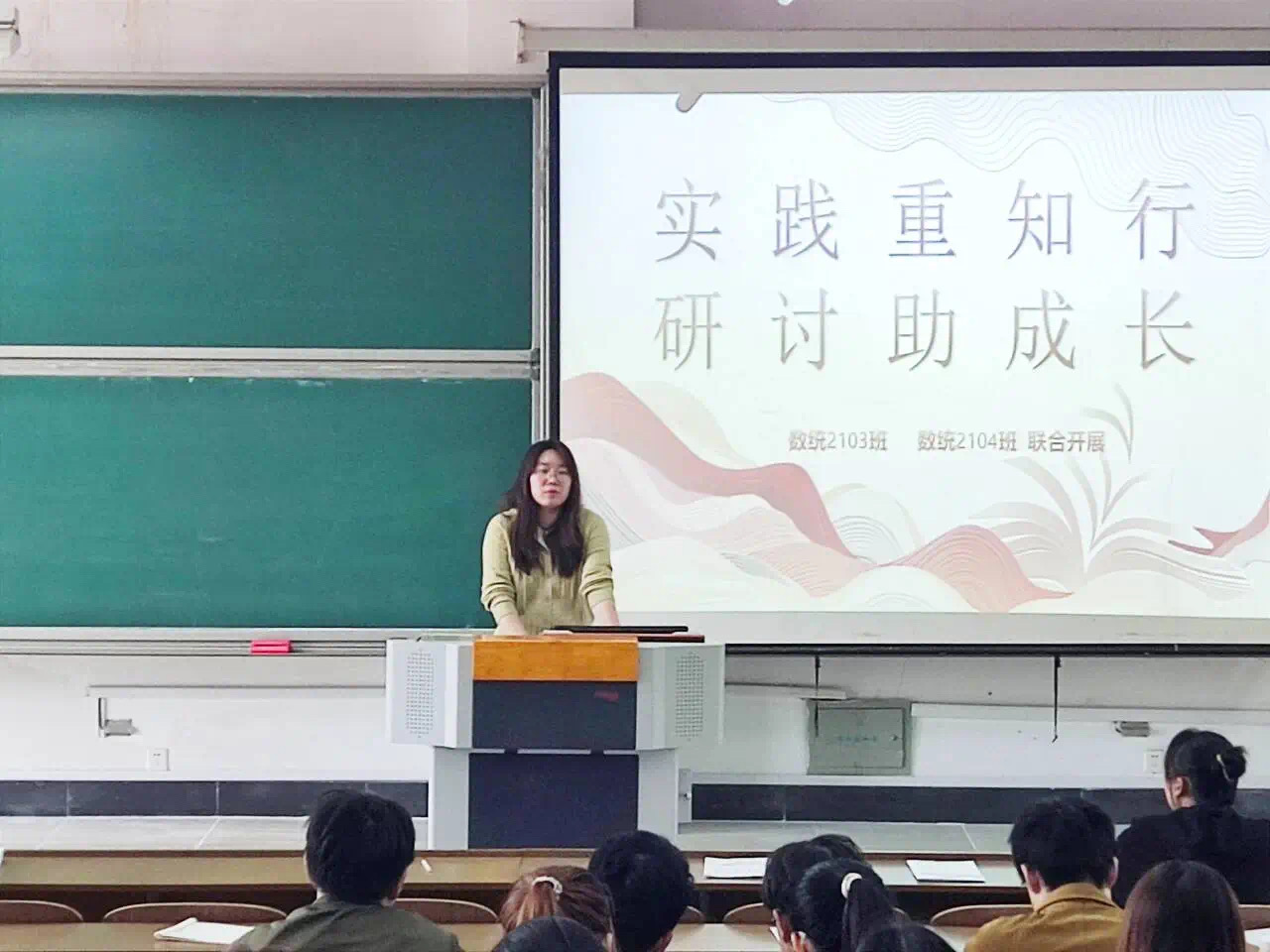 为推动“勤奋 求实 创新 奉献”主题教育月活动深入开展,强化优良学风建设,展现当代大学生风采,引领同学全面发展,数统2103班、2104班全体成员于4月19日在理工楼西阶201联合开展“实践重知行 研讨助成长”主题团日活动。