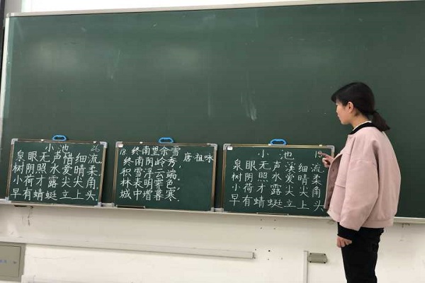 最后,孙可晴同学为大家讲解了粉笔字的评分标准,并展示了班级优秀作品。
