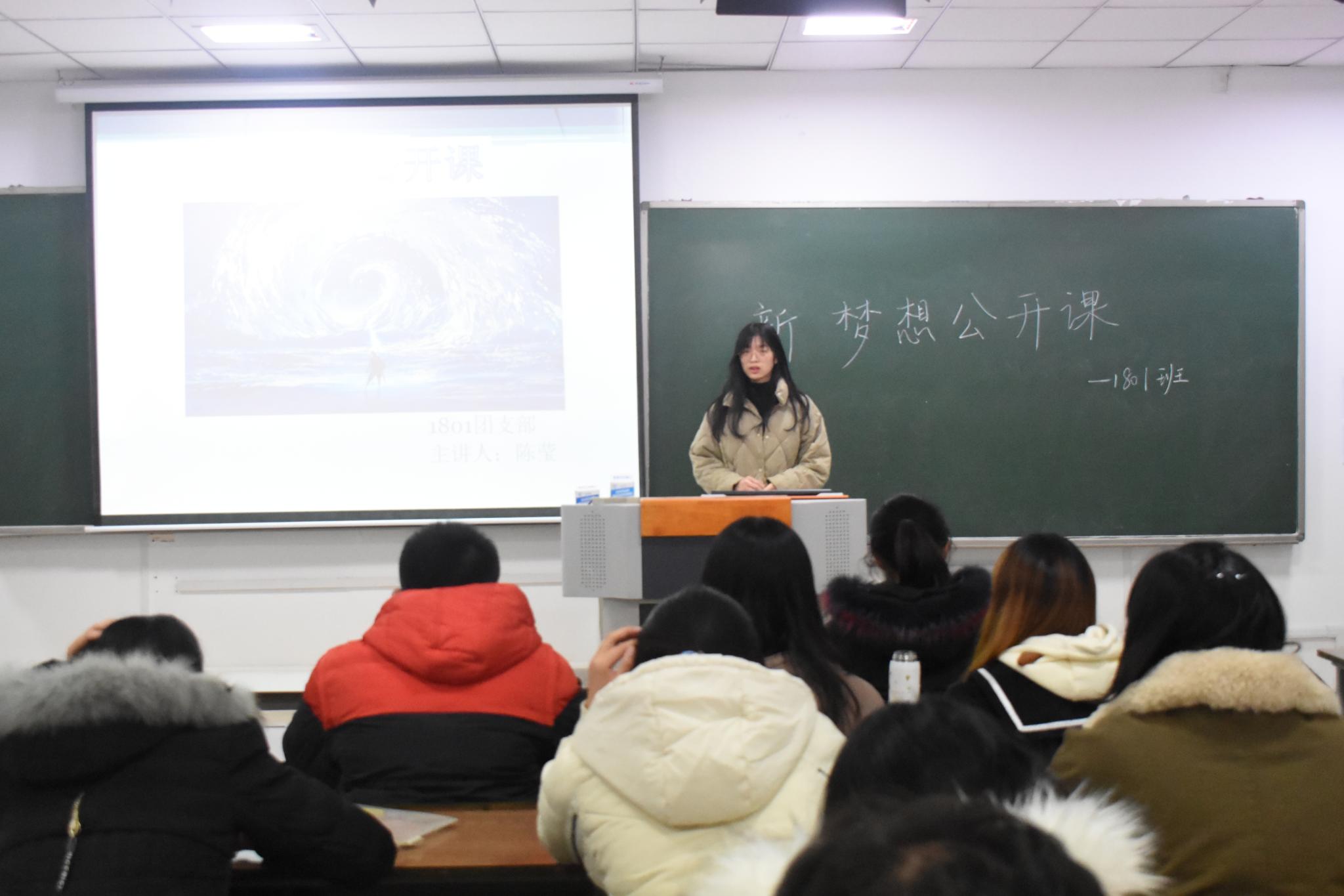 翔宇网10月29日电(记者 陈莹)为帮助同学们将目标视觉化,尽快找到发展方向。10月28日,数统学院1801团支部在理南202开展“梦想公开课”, 本次活动由团支书陈莹主持,1801班全体同学参加。