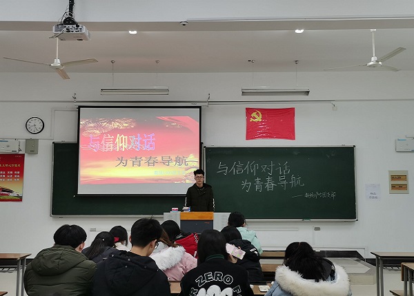 翔宇网12月4日电(记者 吴逸)为使同学们深刻体悟“90后”在战疫中的责任与担当,12月3日晚,数统学院1905班于理南105开展“与信仰对话,为青春导航”主题团日活动。本次活动由团支书聂志宇主持。