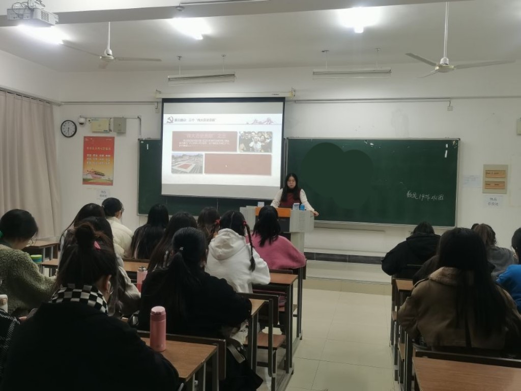 其次,团支书深入阐述共青团的性质和新时代青年的使命,赞扬1904团支部作出活动贡献的青年,并呼吁1904青年都要学习这样的奉献精神。这是1904的责任与骄傲,亦是青年的责任与骄傲。接着提出新时代共青团员要做到有自己的指导思想,明确首要任务。