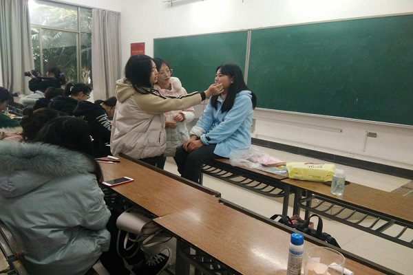 数科学院女生节活动:“对镜贴花黄”化妆活动