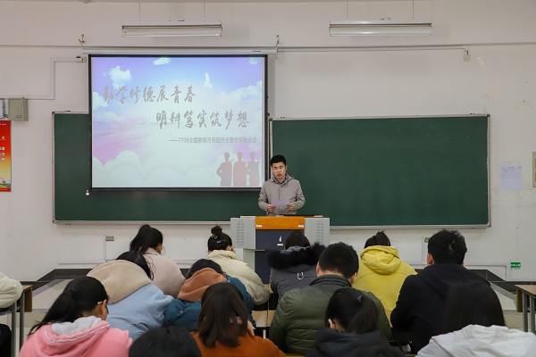 (翔宇网3月22日电 记者 崔亚楠)为进一步推动我校“勤学 修德 明辨 笃行”主题教育月活动的开展,让同学了解学院、班级主题教育月的活动安排,在主题教育月乃至以后的学习生活中,更好的理解并落实习总书记的八字方针,ballbet贝博bb艾弗森数科学院1706班全体同学在3月22日,于理工楼101教室开展“勤学修德展青春 明辨笃实筑梦想”主题班会暨动员大会。
