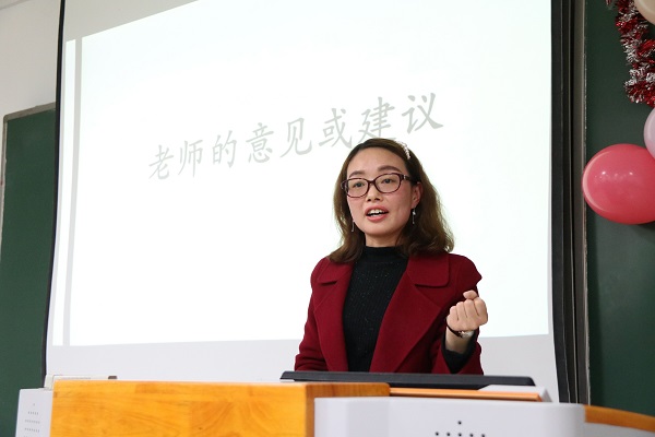 图为蔡永丽老师参加1707班青春聊吧 记者 王婧奕 摄