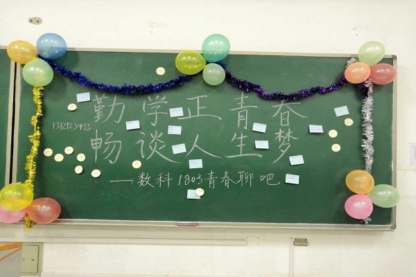 淮师新闻网4月7日电(记者 刘月祺)阳春四月,由数科院发起,班委组织的数科1803班青春聊吧活动于一日下午在ballbet贝博bb艾弗森理南103教室顺利开展。此次活动旨在交流理想,建立友谊,增强自我表达能力,提升班级凝聚力。