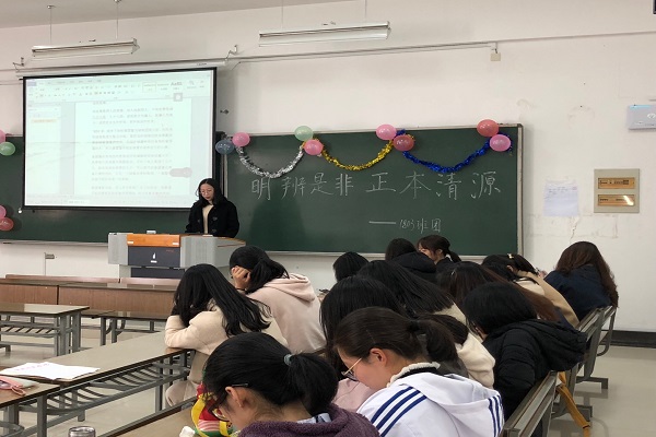 翔宇网4月11日电(记者 刘月祺) 四月,樱花纷飞的时节。数科1803班班长团支书携各位班委举办了此次别出心裁的“明辨是非 正本清源”主题团日活动。鉴于近期校园诈骗案件频发,提高安全意识变得尤为重要。此次活动旨在引导同学们在明辨中找准奋斗方向,在笃实中创造青春业绩。各位班委同学齐心协力,通过积极排练与讨论,共同举办了此次团日活动。