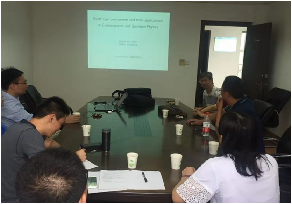 2019年7月14日上午,法国国家科研中心副研究员、南开大学讲席教授韩国牛应邀在理工北楼301室作了题为《Scott-type permanents and their applications to Combinatorics and Quantum Physics》的学术报告。数统学院郭军伟教授主持了此次报告会。数统学院的部分教师和研究生聆听了此次报告。