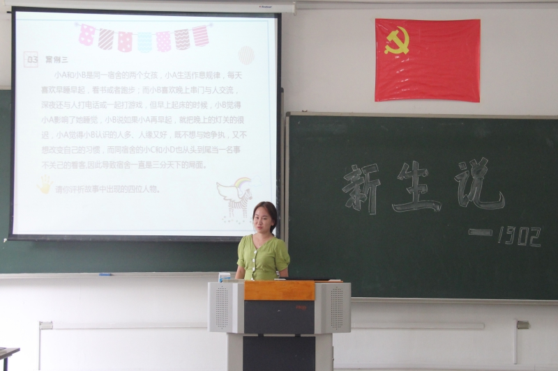 活动当天,新生环绕而坐,氛围和谐融洽。班助从生活、感情、学习方面分别列举了五个真实的校园案例,让同学们自主讨论分析,发表自己的见解。1901班陈瑶同学第一个发言,她指出,同学间要主动关心、互帮互助,遇到问题要学会主动沟通。其他萌新也纷纷加入进来,踊跃发言。刘咪老师进行总结时强调,恋爱要以安全为主,切忌盲目恋爱;舍友之间要多为彼此考虑,遇到矛盾时,要学会主动沟通,切莫扩大矛盾;作为学生,理应充分利用学校资源学习,莫要浪费大好时光。
