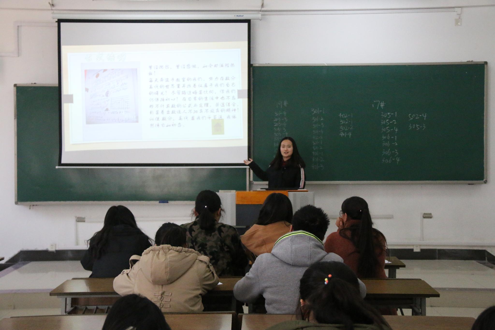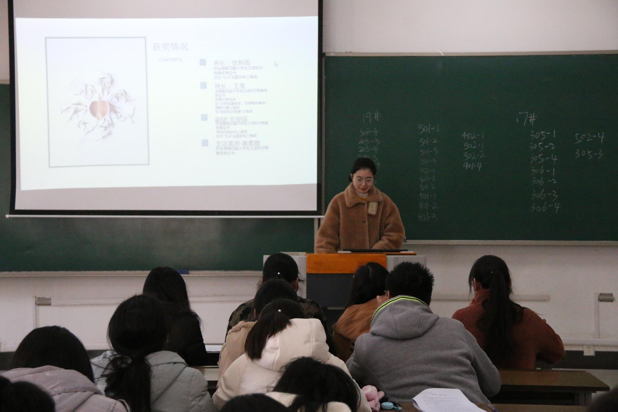 翔宇网12月12日电(记者 张新雨 吕玮然)为进一步推动学院学风建设,促使学生积极健康生活,营造温馨和谐的宿舍环境,12月11日,数统学院在理南103、理南105开展 “星级文明宿舍”评比PPT汇报活动。数统学院宿管部部长担任评委,各宿舍代表准时到场参赛。