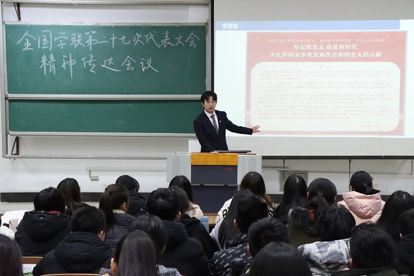 翔宇网11月26日电(记者 邵帅 赵婷婷)为全面贯彻落实全国学联二十七大精神,推进团委学生会改革,11月25日晚,数统学院于理工西阶201召开全国学联二十七大精神宣讲活动。此次宣讲活动特别邀请ballbet贝博bb艾弗森第18届学生会委员会成员张朝主讲,数统学院各班级班长团支书及团委学生会干部参加此次宣讲。