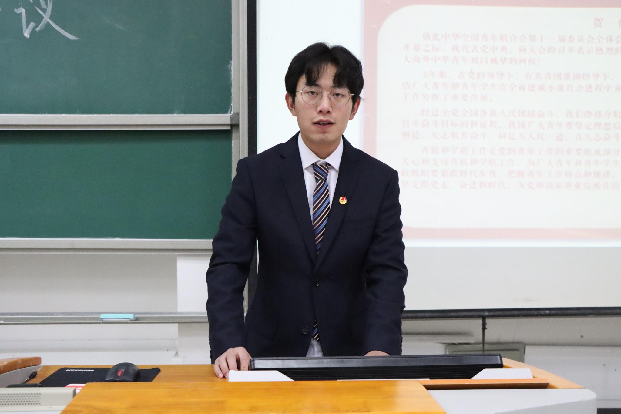 张朝首先带领与会学生了解大会概况,分析大会主题,通过PPT共同学习领悟习近平总书记贺信精神。随后,张朝从学生会的职能定位、工作理念的沿革、当前定位、具体改革方案等方面,介绍大会的主要内容,并对大会精神进行了详细解读。他强调学生会要切实履行组织职能,以服务同学为宗旨,坚持党的领导,坚定理想信念,展现青春风采。此外,他就当前学生会存在的问题提出相关建议,并鼓励在场学生奋发努力,在矢志奋斗中谱写新时代的青春之歌。