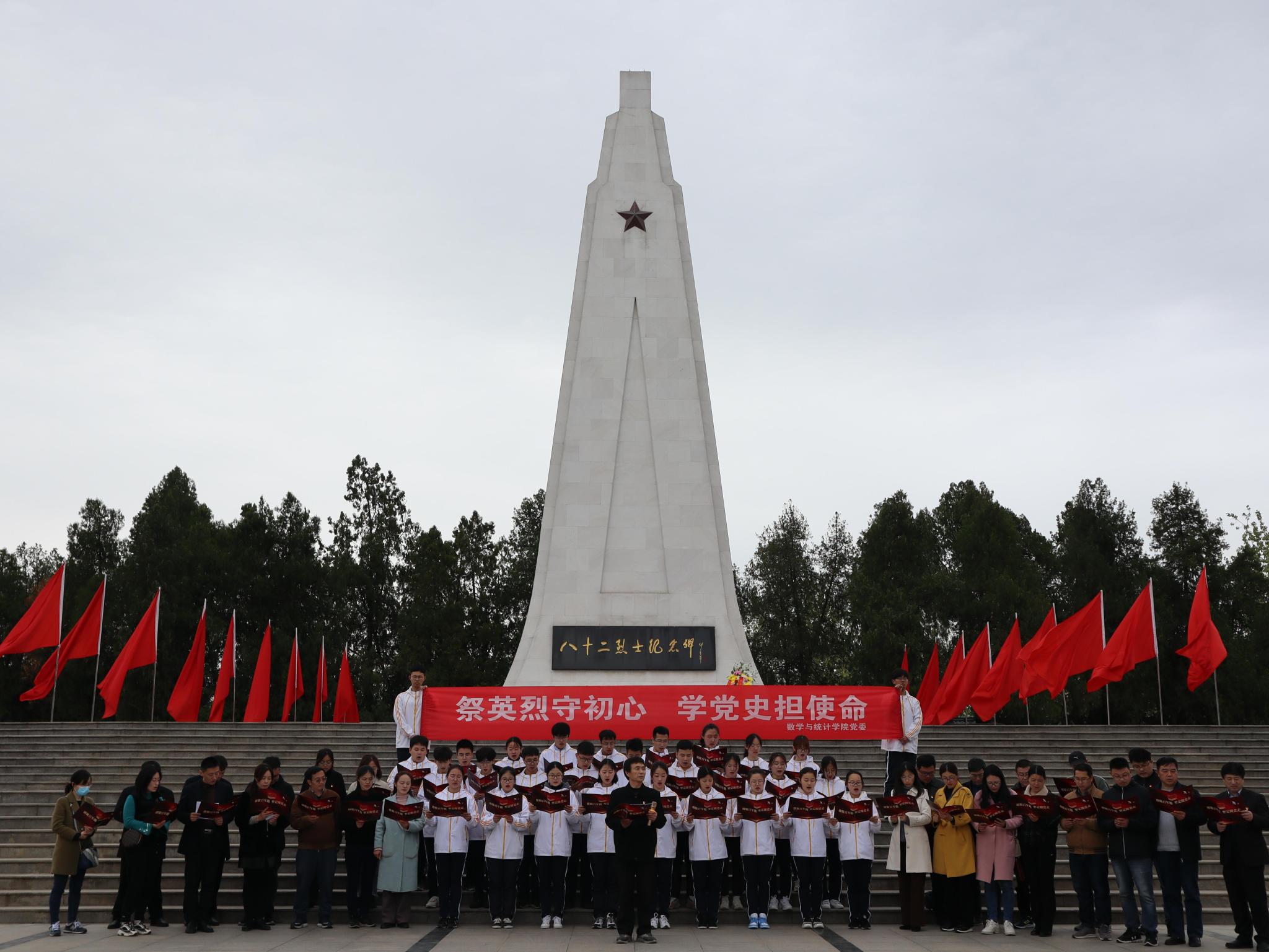 翔宇网4月15日电(记者 吕玮然)为进一步深化党史学习教育,4月13日下午,ballbet贝博bb艾弗森ballbet贝博bb艾弗森党委刘老庄八十二烈士陵园、“中国好人”李爱云家开展“守望来时路 筑梦新时代”系列党日活动。数统学院师生党员50多人参加此次党日活动。