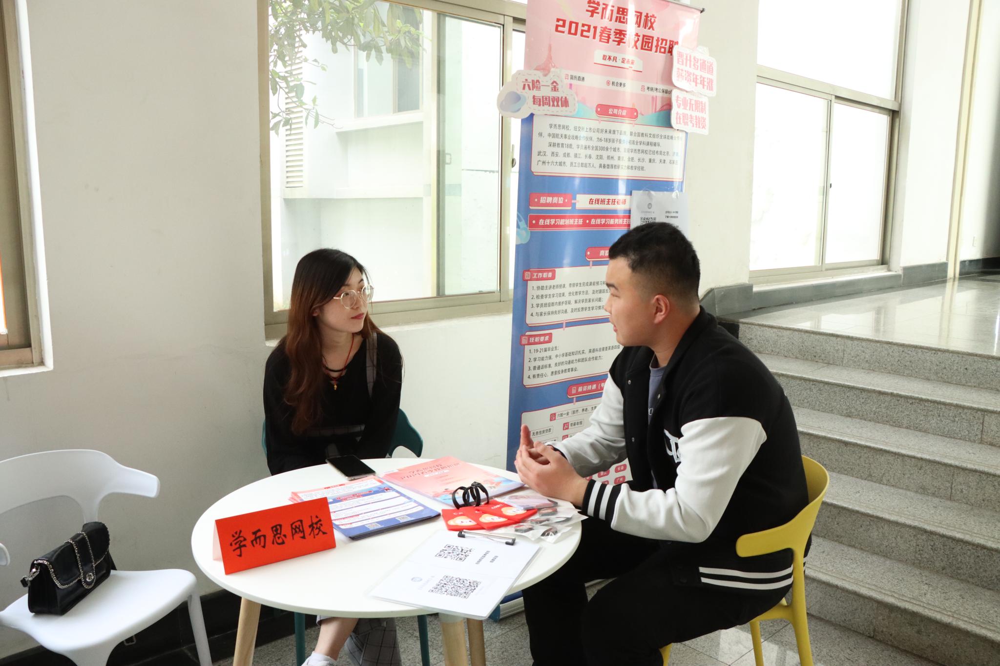 最后,星火教育、高途课堂、学而思网校、海豚教育等多家知名教育机构联合开展现场供需洽谈会,进一步提升学生应聘的积极性与投入度,王白丽鼓励同学们积极与用人单位进行沟通与交流,以帮助毕业生积极应对求职的挑战。
